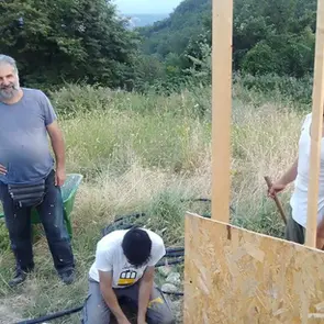 Υπάρχουν ήδη βασικές υποδομές, όπως παροχή νερού, WC, ντουζιέρα, εξωτερική κουζίνα και σκηνές για τη διαμονή μας και των επισκεπτών.